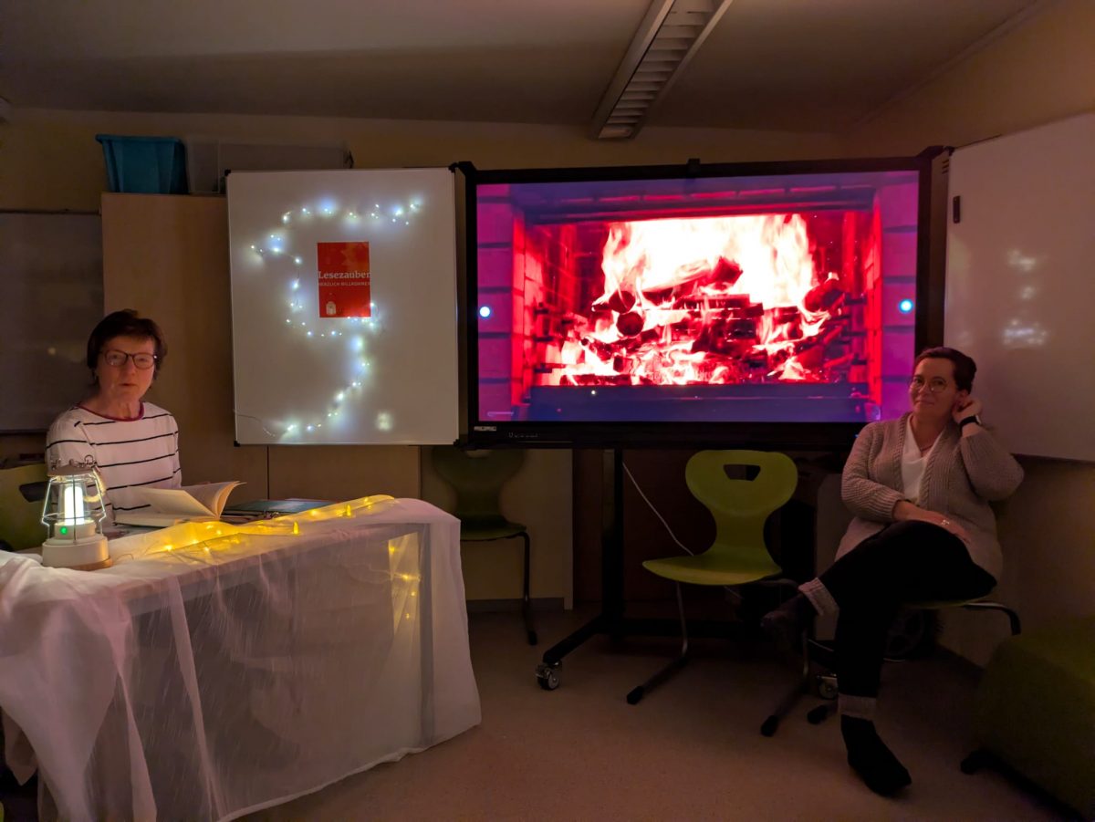Im Anschluss setzte sich der leuchtende Fackelumzug in Bewegung und sorgte für echte Gänsehautmomente. Danach verteilte sich das bunte Treiben über das Schulgelände: Am Glücksrad wurde gespannt gedreht, beim gemütlichen Vorlesen lauschten Kinder spannenden Geschichten, und bei den Schattenspielen entstanden mit etwas Fantasie erstaunliche Figuren an der Wand.