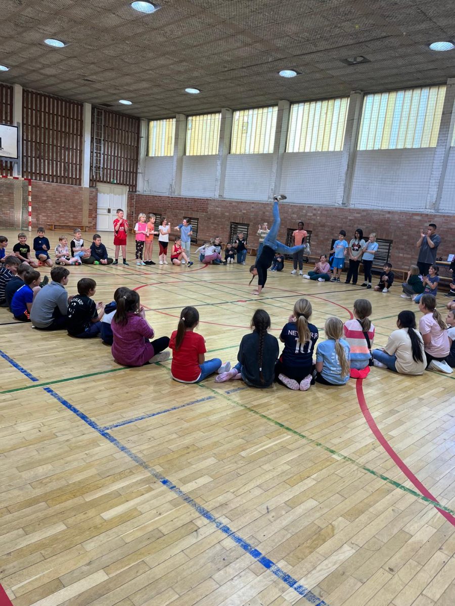 Posted onWenn plötzlich in allen Klassenräumen gezählt, geklatscht und gelacht wird, dann ist klar: An unserer Schule ist Tanzprojekt-Zeit! Zwei Tage lang verwandelte ein professioneller Tanzlehrer unsere Turnhalle in ein echtes Tanzstudio – und die ganze Schule machte mit.